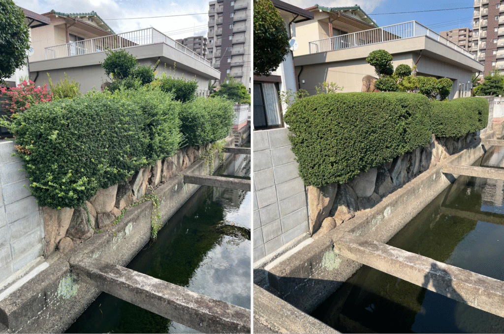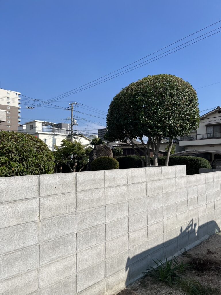 倉敷市中島にて金木犀、ツゲの生垣、その他の剪定を行いました。