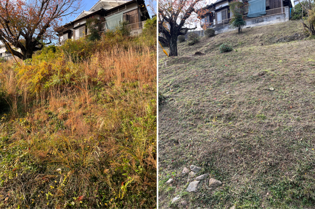 2025.12.21 施工実績 法面の草刈り 剪定 倉敷市藤戸町藤戸 倉敷市藤戸町藤戸にて草刈り、ツツジ さつきの剪定を行いました。 こちらは以前お隣の作業させていただいていたところ、お声かけいただき、今回作業することになりました。 作業前 作業後 作業前後 シェアする? このカテゴリの記事一覧に戻る