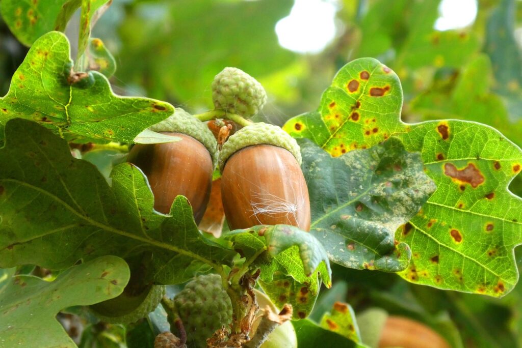 樫の木はブナ科の常緑樹で、ドングリ(実)を付ける木としても知られていますせる木。